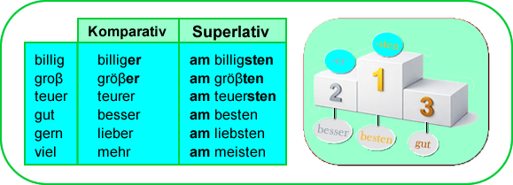 Unregelmäßigkeiten: Einige Adjektive sind unregelmäßig, wie z. B. gut → besser.