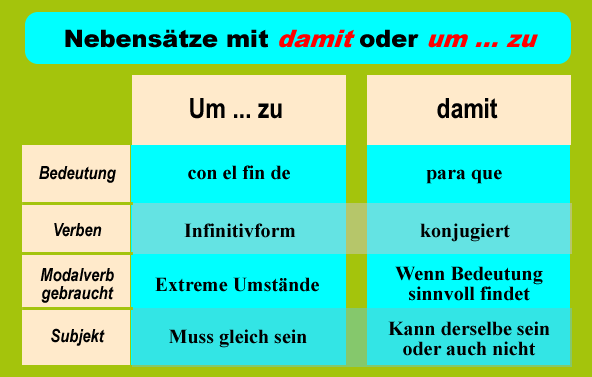 GRAMATIK IV: Nebensätze mit DAMIT oder UM … ZU |